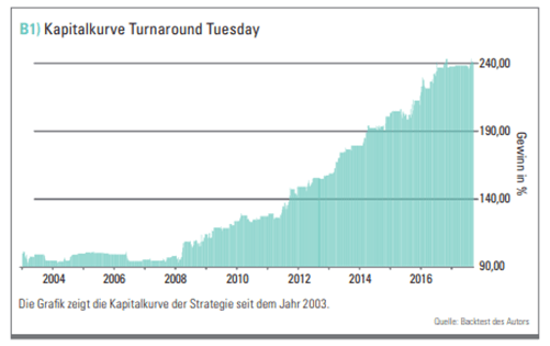 Es existieren einige extreme Beispiele von Erfolgen, die durch die Tuesday Turnaround Strategie erzielt wurden. Insbesondere nach einem Marktcrash waren die Dienstage die Tage, an denen die Marktstimmung wieder positiv wurde.